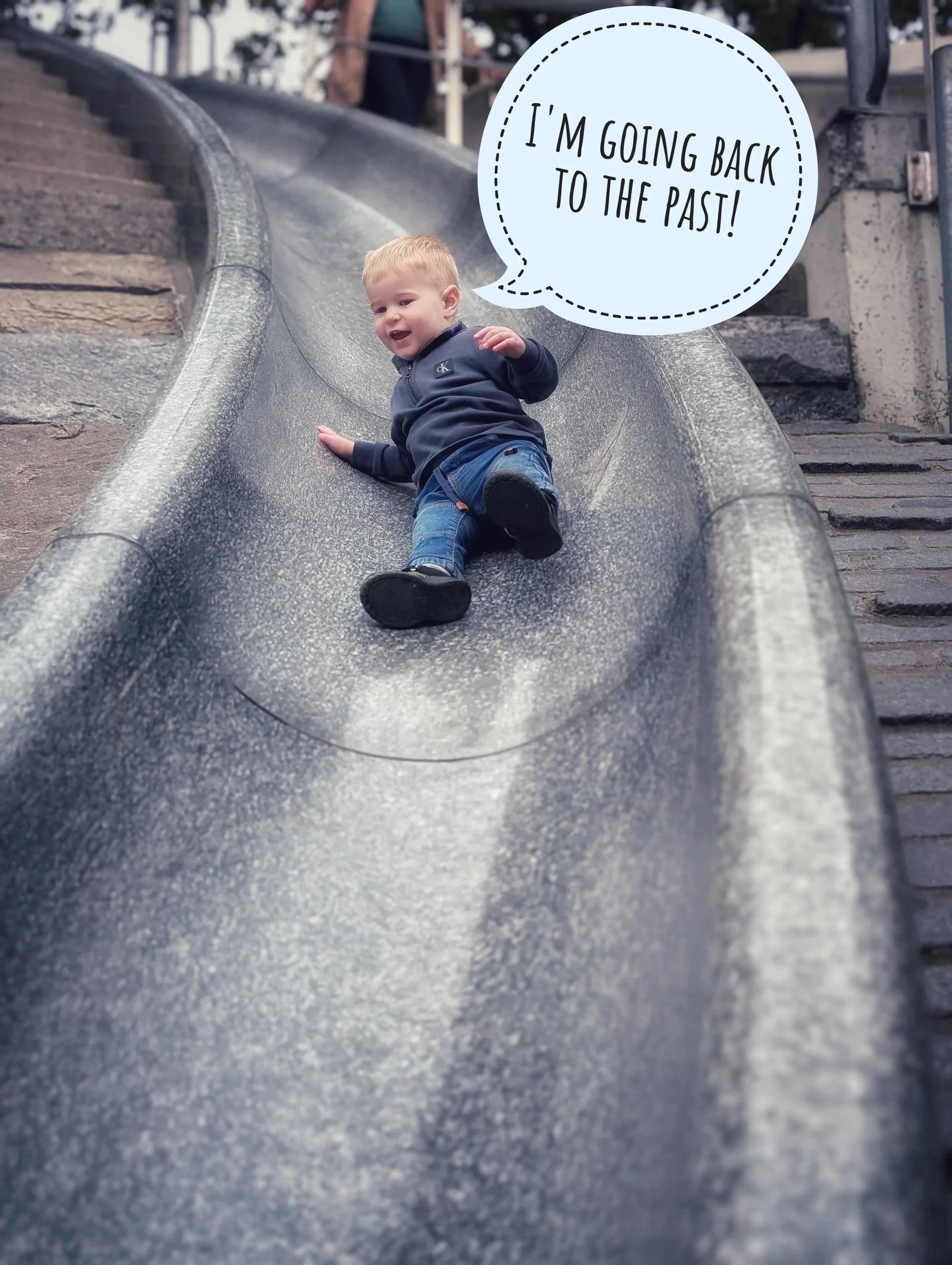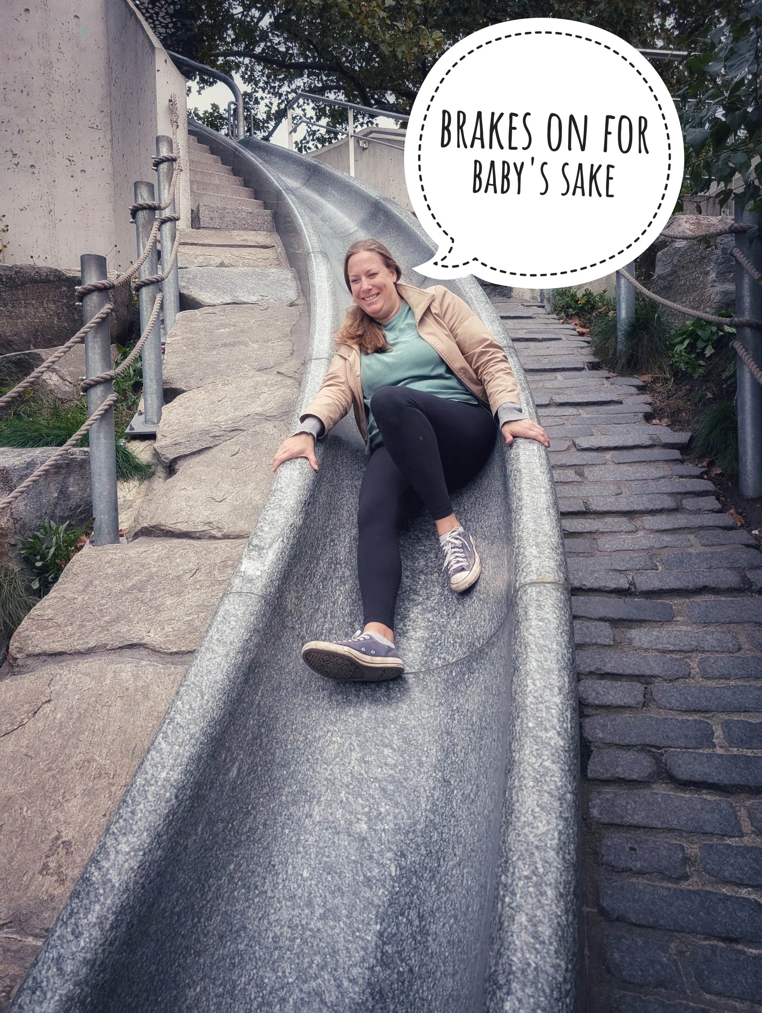 The real reason we came, though, is the playground Sophie’s dad recommended. It’s an instant hit. The slides are stone and surprisingly fast.
