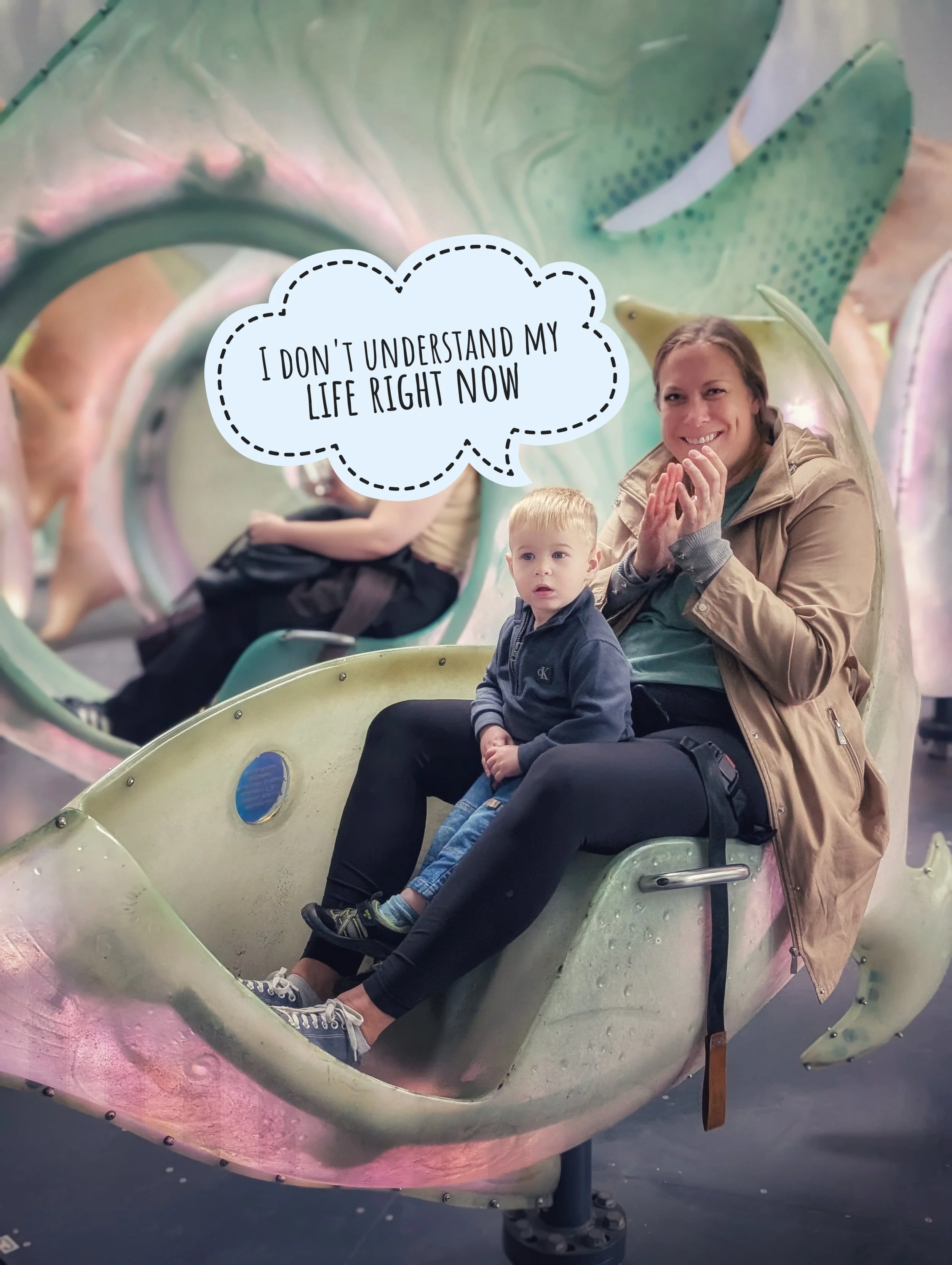 This time we take the hotel shuttle. Convenient pick-up, sure, but inside it feels like someone tried to Tetris a daycare into a lunchbox then shook it violently. Sophie is drowning in children, I’m drowning in stroller gear and every “just in case” item we own. We survive. Barely. But we survive.